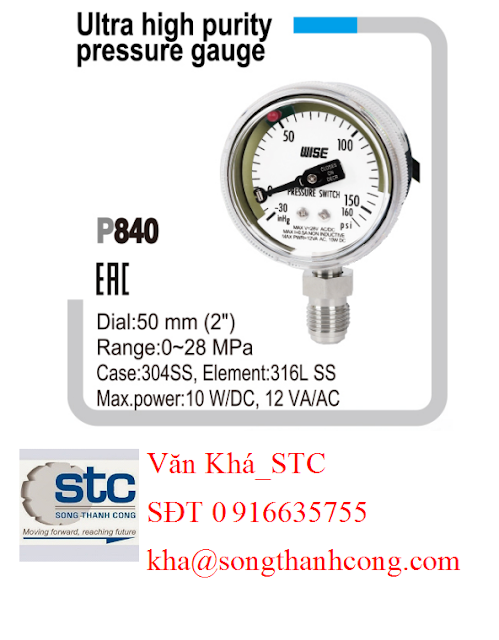 Đồng hồ áp suất Wise P840 Series, Ultra high purity pressure gauge with transmitter, Wise Vietnam, STC Vietnam